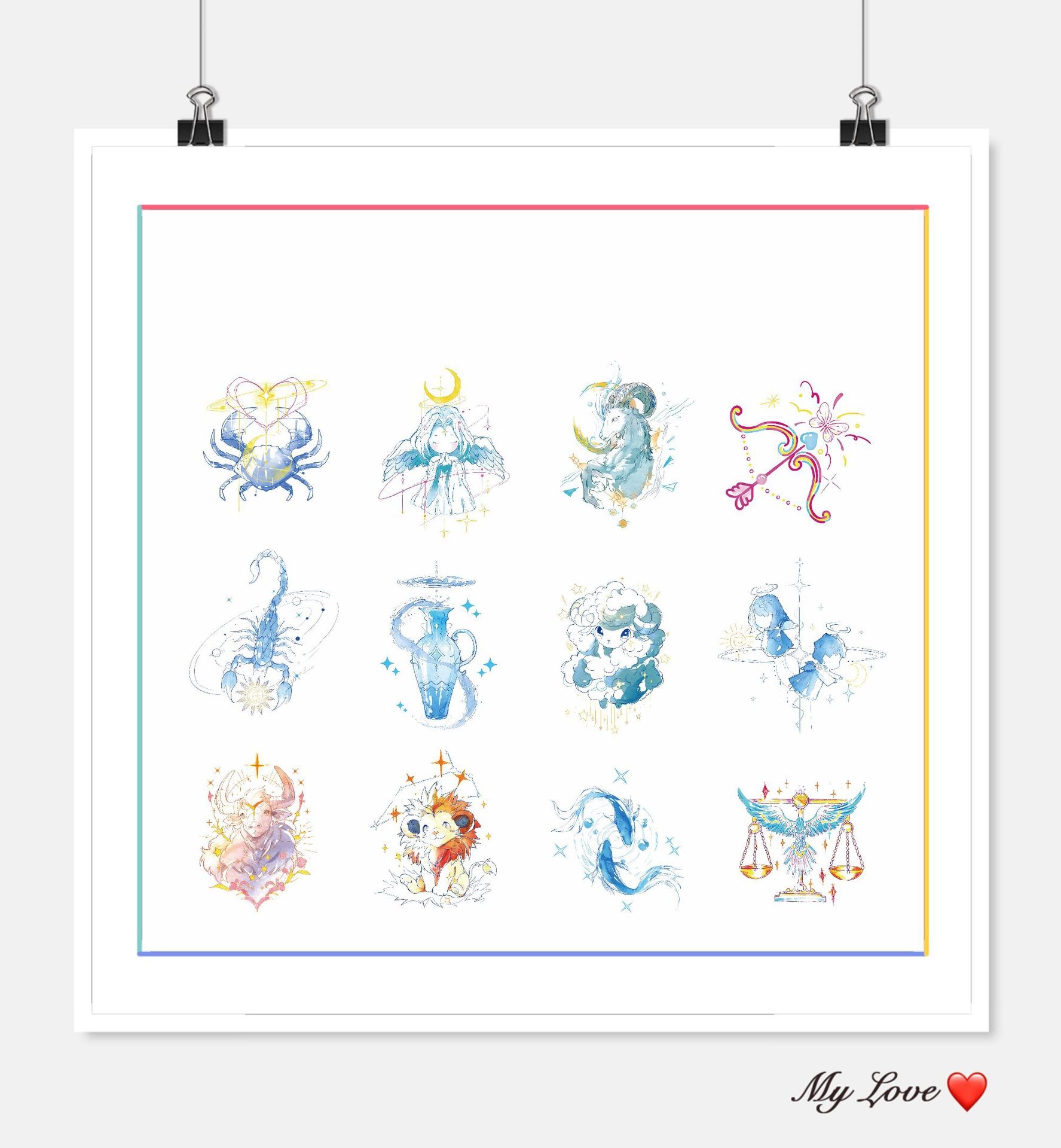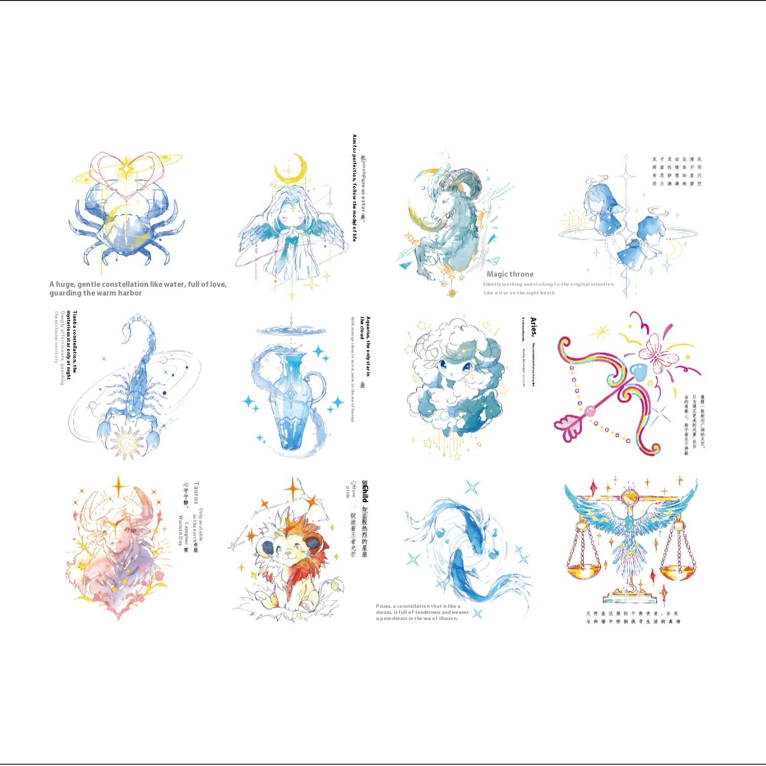 Beautiful Twelve Constellation Suit Good-looking Ins Color Tattoo Sticker BUY 1 GET 3