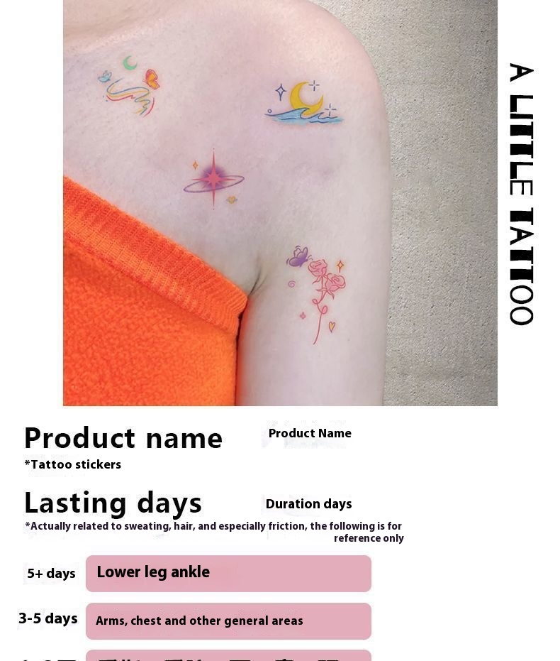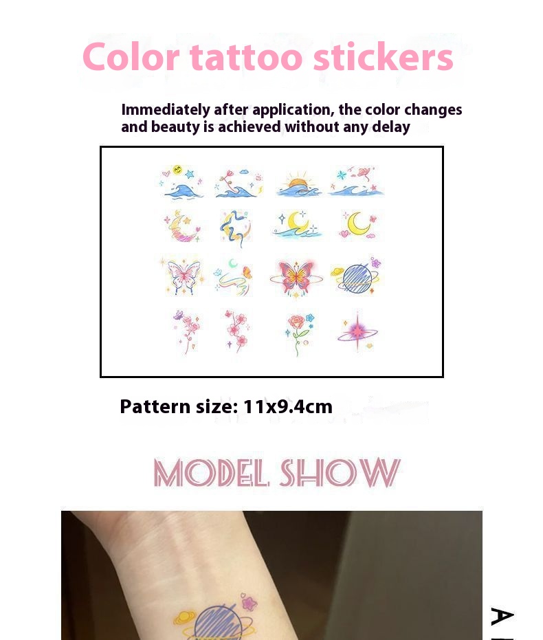 For Herbal Tattoos: Apply the tattoo to your skin and let it dry for 1β2 hours without touching or wetting it. After removal, the color will fully develop within 24 hours.
