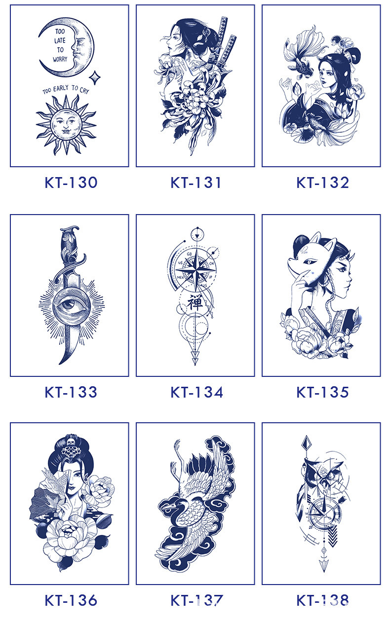 Pick a tattoo design that matches your style – whether it’s a Herbal Tattoo (black) or a Color Tattoo. We have something for everyone!