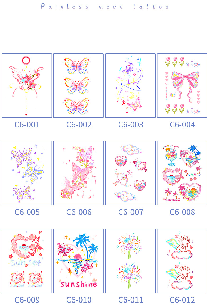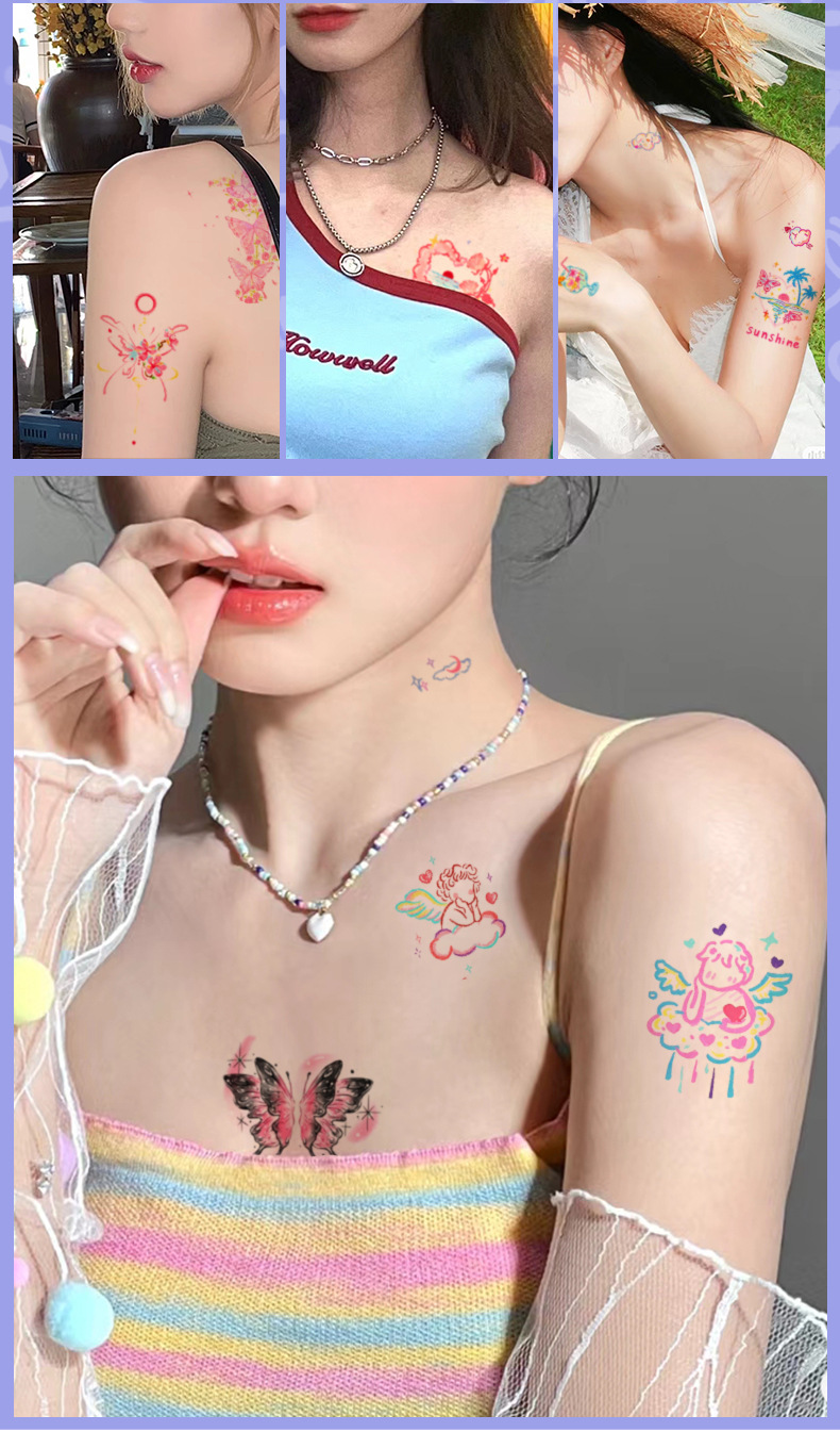 For Color Tattoos: Remove the clear film, place the tattoo face-down on your skin, and press a wet cloth on it for about 30 seconds. Then slowly peel off the backing paper.